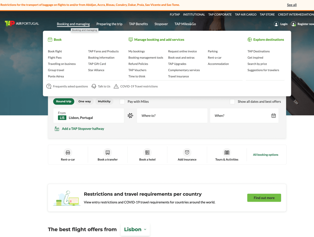 TAP’s website needed to serve a wide range of users — from those booking flights to those solving urgent problems or simply searching for information. The challenge was to design an IA that matched user mental models while also addressing SEO requirements, as many visits originated from search engines.