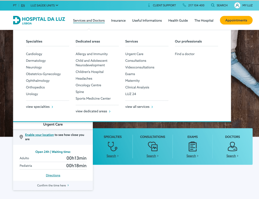 The new IA allowed users to easily find services across clinics while giving Luz Saúde a scalable framework for managing 29 websites efficiently within one CMS.